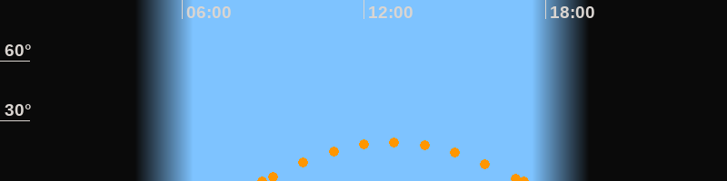 Höchster Stand (Kulmination)12:57 Uhr (h = 19.5°)