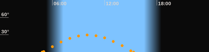 Höchster Stand (Kulmination)10:05 Uhr (h = 29.6°)