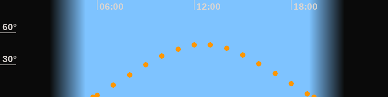 Aufgang05:40 Uhr im Osten (αAz = 73.5°)