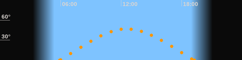 Höchster Stand (Kulmination)12:36 Uhr (h = 46.7°)