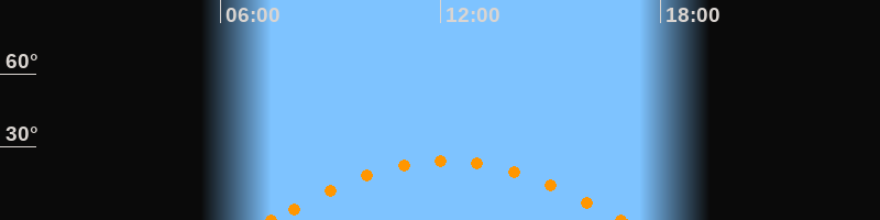Höchster Stand (Kulmination)12:09 Uhr (h = 24.3°)