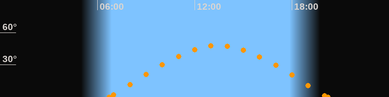 Höchster Stand (Kulmination)13:28 Uhr (h = 47.9°)