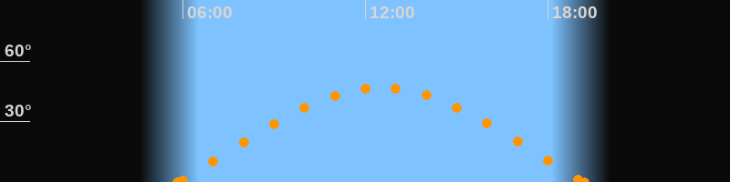 Höchster Stand (Kulmination)12:30 Uhr (h = 46.9°)