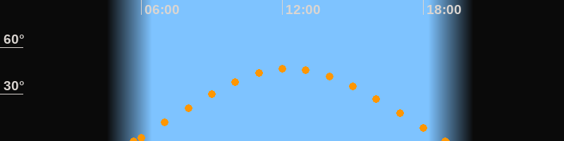 Höchster Stand (Kulmination)12:18 Uhr (h = 46.4°)