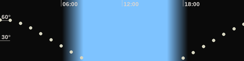 Höchster Stand (Kulmination)00:25 Uhr, (h=61.1°)