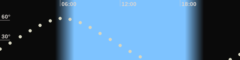 Höchster Stand (Kulmination)06:12 Uhr (h=62.5°)