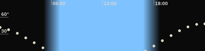 Höchster Stand (Kulmination)23:45 Uhr (h=48.1°)
