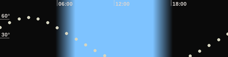 Höchster Stand (Kulmination)02:58 Uhr (h=62.6°)