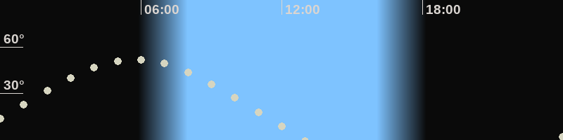 Höchster Stand (Kulmination)05:47 Uhr (h=52.3°)