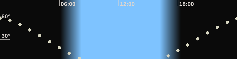 Mondaufgang16:13 Uhr im Nordosten (αAz = 50.3°)