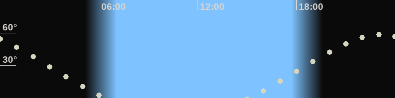 Höchster Stand (Kulmination)23:07 Uhr (h=58.5°)
