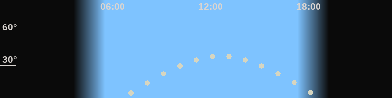 Höchster Stand (Kulmination)13:23 Uhr (h=38.3°)