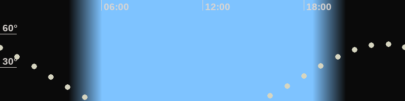 Monduntergang05:26 Uhr im Nordwesten (αAz = 295.8°)
