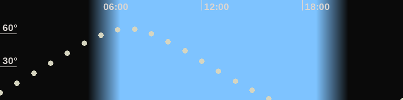 Höchster Stand (Kulmination)07:32 Uhr (h=64.3°)