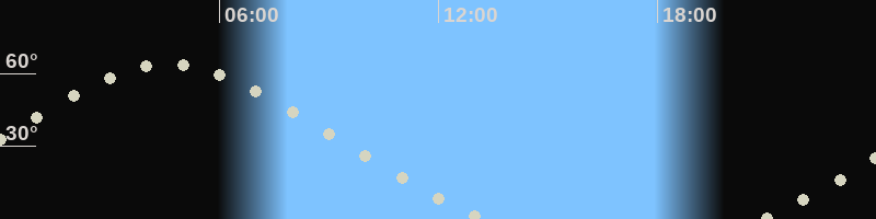 Höchster Stand (Kulmination)04:32 Uhr (h=63.7°)