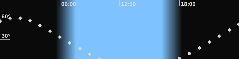 Höchster Stand (Kulmination)01:29 Uhr (h=63.2°)