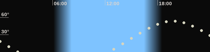 Höchster Stand (Kulmination)19:40 Uhr (h=53.6°)