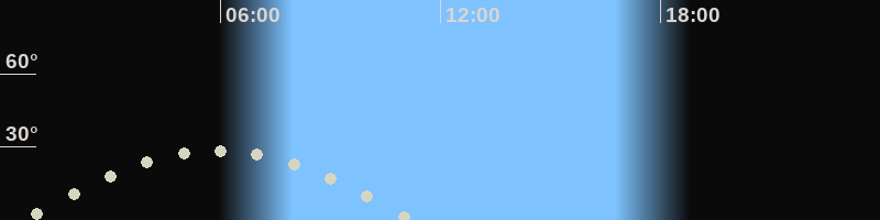 Höchster Stand (Kulmination)06:00 Uhr (h=28.6°)