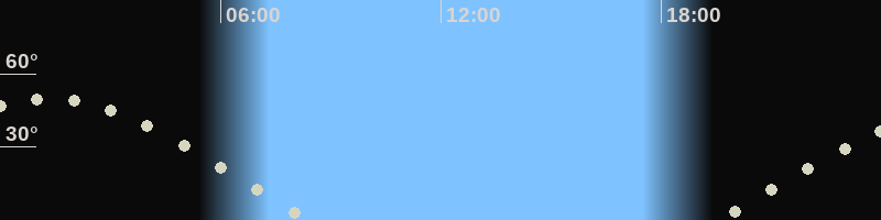 Mondaufgang19:29 Uhr im Osten (αAz = 79.6°)