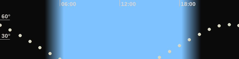 Höchster Stand (Kulmination)23:08 Uhr (h=53.1°)