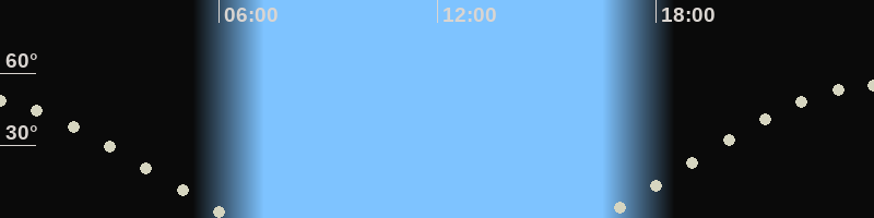 Höchster Stand (Kulmination)23:49 Uhr (h=54.6°)