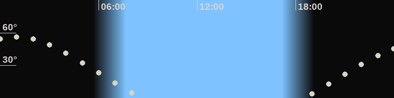 Höchster Stand (Kulmination)01:00 Uhr (h=56.5°)