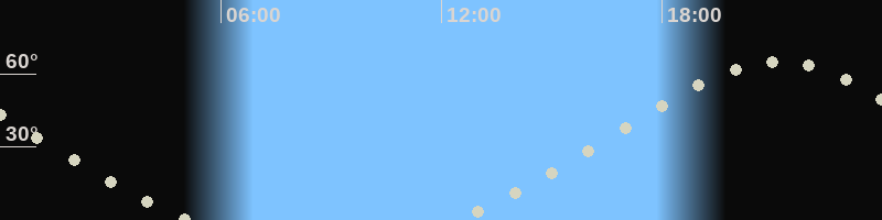 Höchster Stand (Kulmination)21:09 Uhr (h=65°)