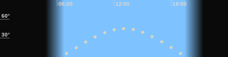 Höchster Stand (Kulmination)13:04 Uhr (h=45.7°)