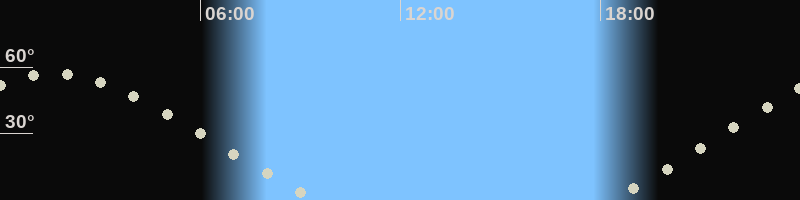 Höchster Stand (Kulmination)01:30 Uhr, (h=56.5°)