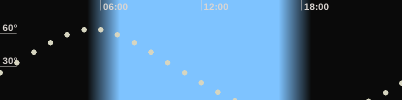 Höchster Stand (Kulmination)05:30 Uhr (h=64.1°)