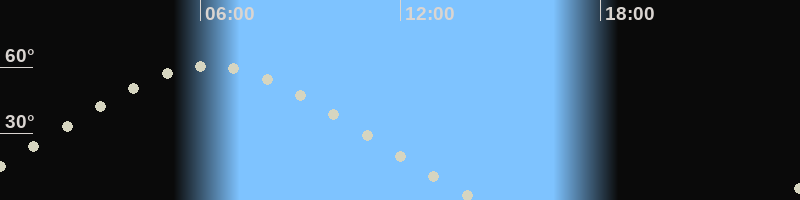 Höchster Stand (Kulmination)06:18 Uhr (h=60.8°)