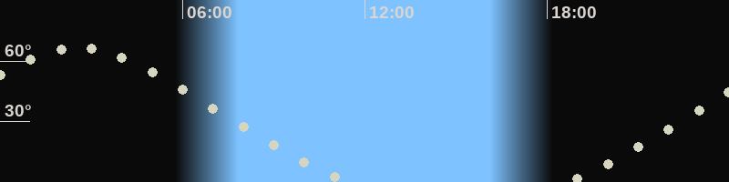 Höchster Stand (Kulmination)02:34 Uhr (h=66.6°)