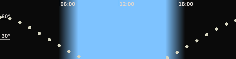 Höchster Stand (Kulmination)00:05 Uhr, (h=64°)