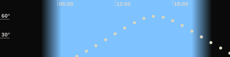 Höchster Stand (Kulmination)16:08 Uhr (h=64.2°)