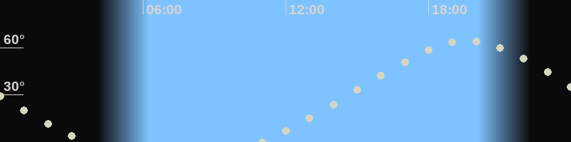 Höchster Stand (Kulmination)19:35 Uhr (h=64.6°)