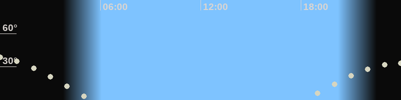 Höchster Stand (Kulmination)23:59 Uhr (h=33.6°)