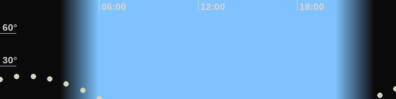 Monduntergang06:05 Uhr im Südwesten (αAz = 240.1°)