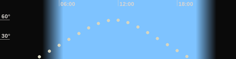 Höchster Stand (Kulmination)11:34 Uhr (h=60.1°)