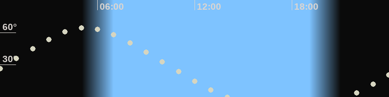 Höchster Stand (Kulmination)05:12 Uhr (h=64.2°)