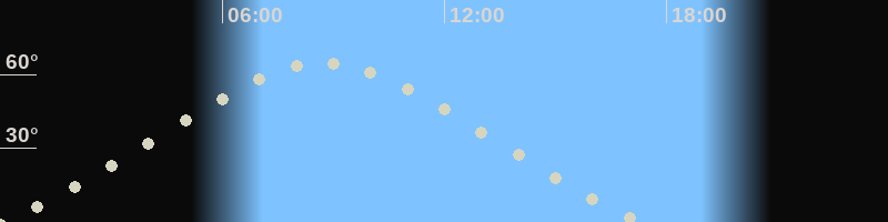 Höchster Stand (Kulmination)08:43 Uhr (h=64.8°)