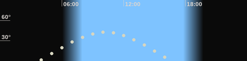 Höchster Stand (Kulmination)10:15 Uhr (h=43.1°)