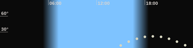 Mondaufgang14:16 Uhr im Südosten (αAz = 119°)