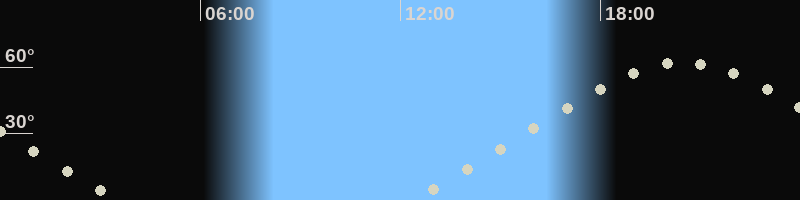 Mondaufgang12:16 Uhr im Nordosten (αAz = 54.9°)