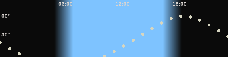 Höchster Stand (Kulmination)19:15 Uhr (h=64.5°)