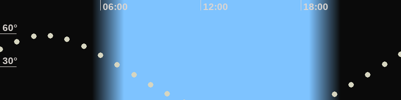 Höchster Stand (Kulmination)02:34 Uhr (h=57.9°)