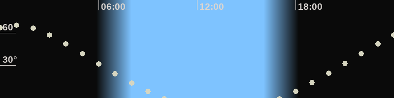 Höchster Stand (Kulmination)00:53 Uhr (h=67.3°)