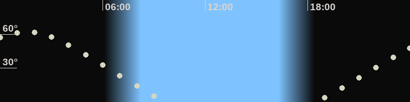 Höchster Stand (Kulmination)01:32 Uhr (h=62.2°)