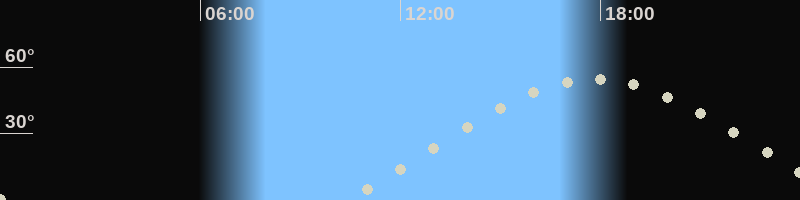 Höchster Stand (Kulmination)17:45 Uhr (h=54.3°)