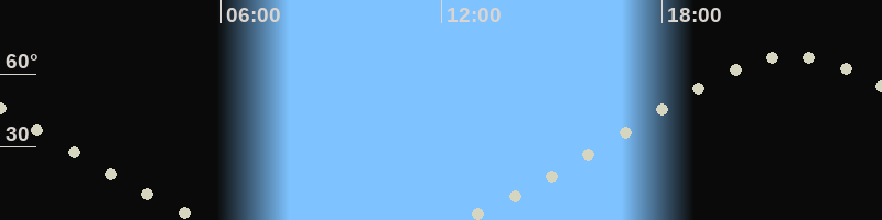 Höchster Stand (Kulmination)21:30 Uhr (h=67.4°)