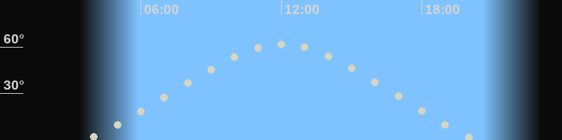 Höchster Stand (Kulmination)12:02 Uhr (h=62.2°)
